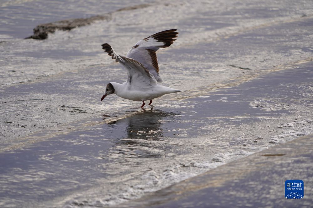 這是6月17日在沙柳河國(guó)家濕地公園拍攝的正在捕食青海湖裸鯉的水鳥。新華社記者 耿輝凰 攝