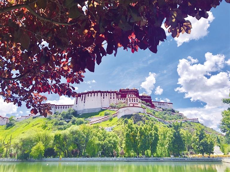 拉薩的夏天有獨特的風(fēng)格和別致的風(fēng)姿。天空藍(lán)得自帶“美顏”、白云仿佛“觸手可及”、日光耀眼奪目,還有那與夏天不匹配的溫度。拉薩的“熱”很獨特,站在陽光下有夏天的味道,出汗的時候去往樹蔭乘涼,又有一絲秋天的涼意。