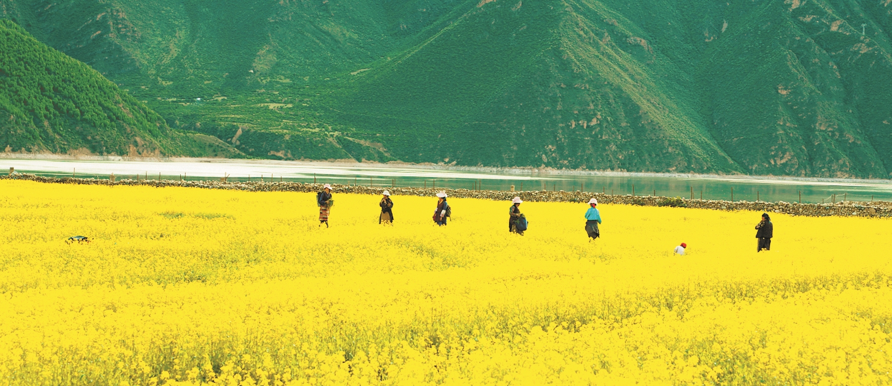 圖為墨竹工卡縣尼瑪江熱鄉(xiāng)幫達村村民在油菜田間勞作。西藏日報記者 旦增蘭澤攝