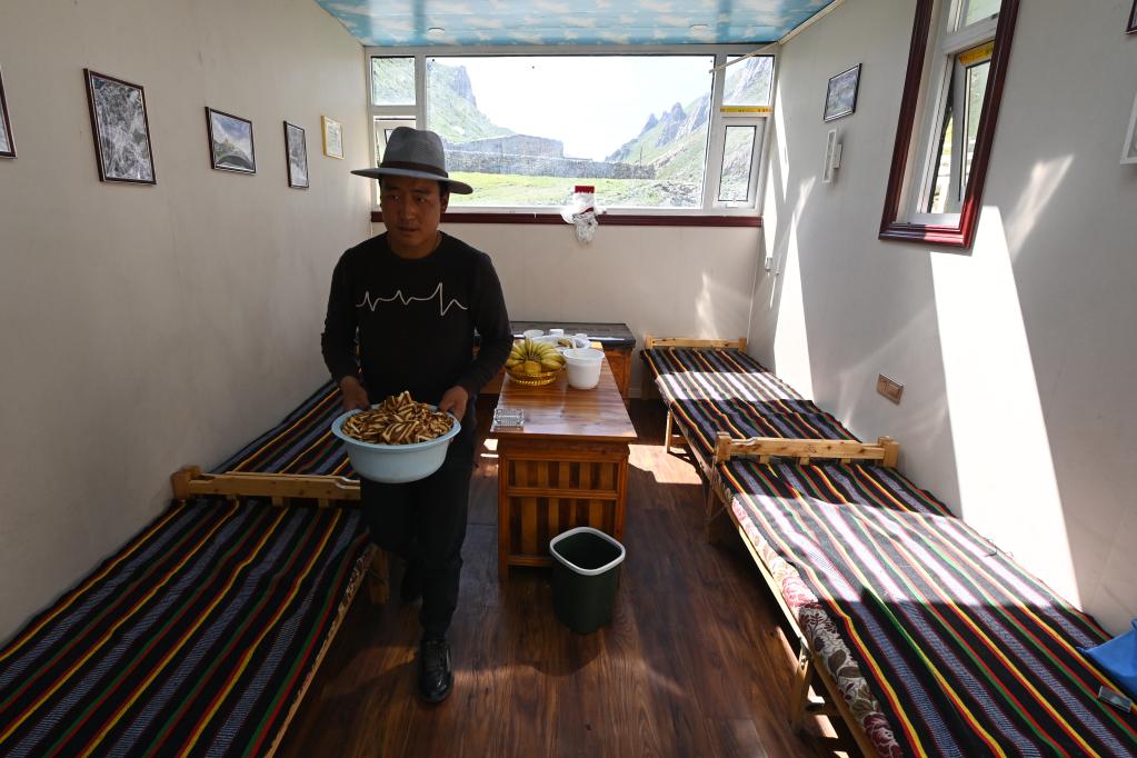 受新冠肺炎疫情影響,昂賽大峽谷自然體驗項目去年暫停。今年7月8日,大峽谷自然體驗活動重新開放預(yù)約,政府為接待家庭提供了新的接待集裝箱。桑周置辦了新的床、被褥、桌子、爐子等,還貼上了藍(lán)天白云的壁紙?!榜R上要接待新的體驗者了,一定要讓他們有家的感覺。”看著收拾一新的“家”,桑周十分欣喜。