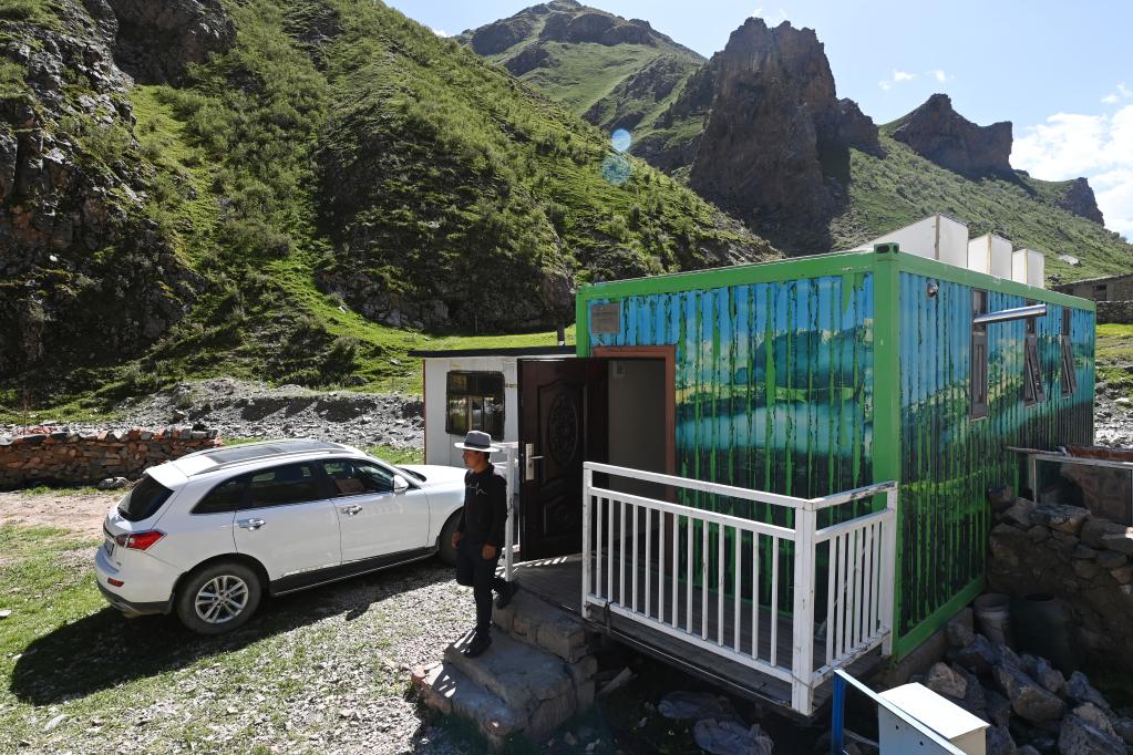 盛夏,昂賽大峽谷流水潺潺、綠草如茵;四周山勢奇絕,常有雪豹、白唇鹿、巖羊等野生動物出沒。在特許經(jīng)營接待集裝箱內(nèi),桑周忙著打掃衛(wèi)生,清洗床鋪,準(zhǔn)備迎接從各地到來的自然體驗者。