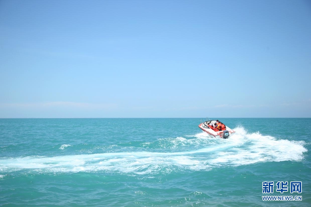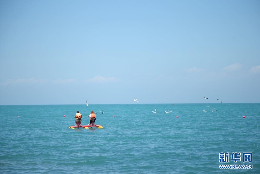 8月8日,游客在青海湖體驗(yàn)水上娛樂(lè)項(xiàng)目。新華網(wǎng) 馬洪婷 攝