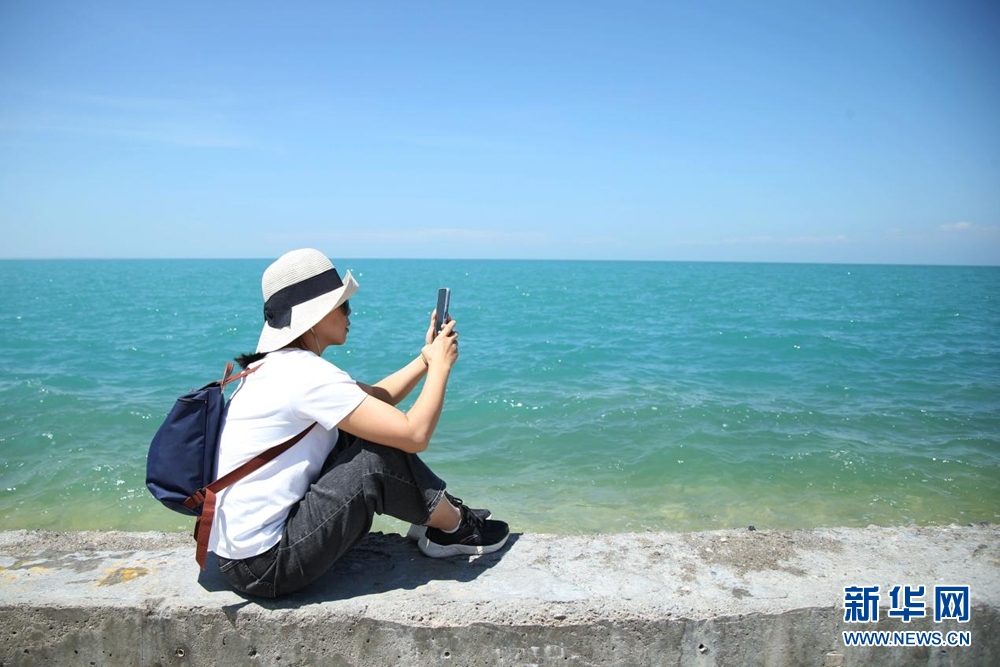 8月8日,游客在青海湖畔游玩。新華網(wǎng) 馬洪婷 攝