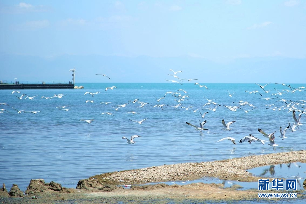 一群棕頭鷗在清澈的湖水中覓食。新華網(wǎng) 馬洪婷 攝