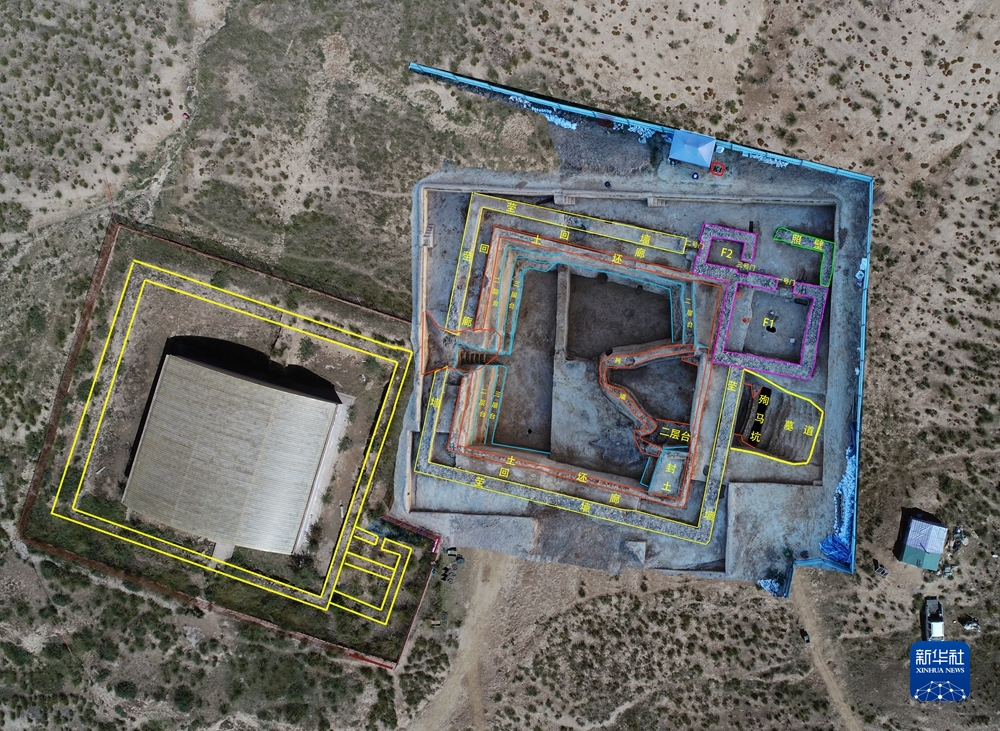 “2022年的工作重點(diǎn)是對(duì)2007QM1進(jìn)行保護(hù)性清理發(fā)掘?!敝袊?guó)社會(huì)科學(xué)院考古研究所副研究員韓建華介紹,目前2007QM1清理發(fā)掘工作已經(jīng)完成。據(jù)介紹,2007QM1位于2018血渭一號(hào)墓西側(cè),緊挨2018血渭一號(hào)墓西塋墻。早年已發(fā)掘出塋墻、地上建筑、墓道、甬道、照墻和墓室,但未公布考古資料。為保護(hù)展示遺址,經(jīng)重新發(fā)掘,確認(rèn)該墓墓園形制和規(guī)模與2018血渭一號(hào)墓墓園相似。