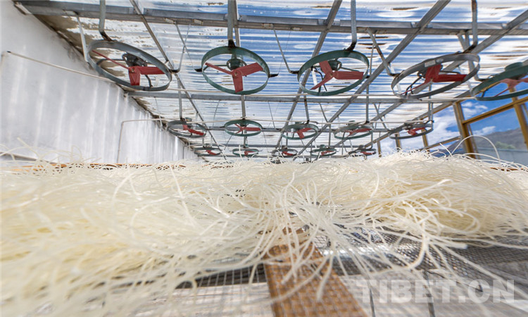 圖為山南市一合作社內(nèi)用于烘干粉條的電風(fēng)扇