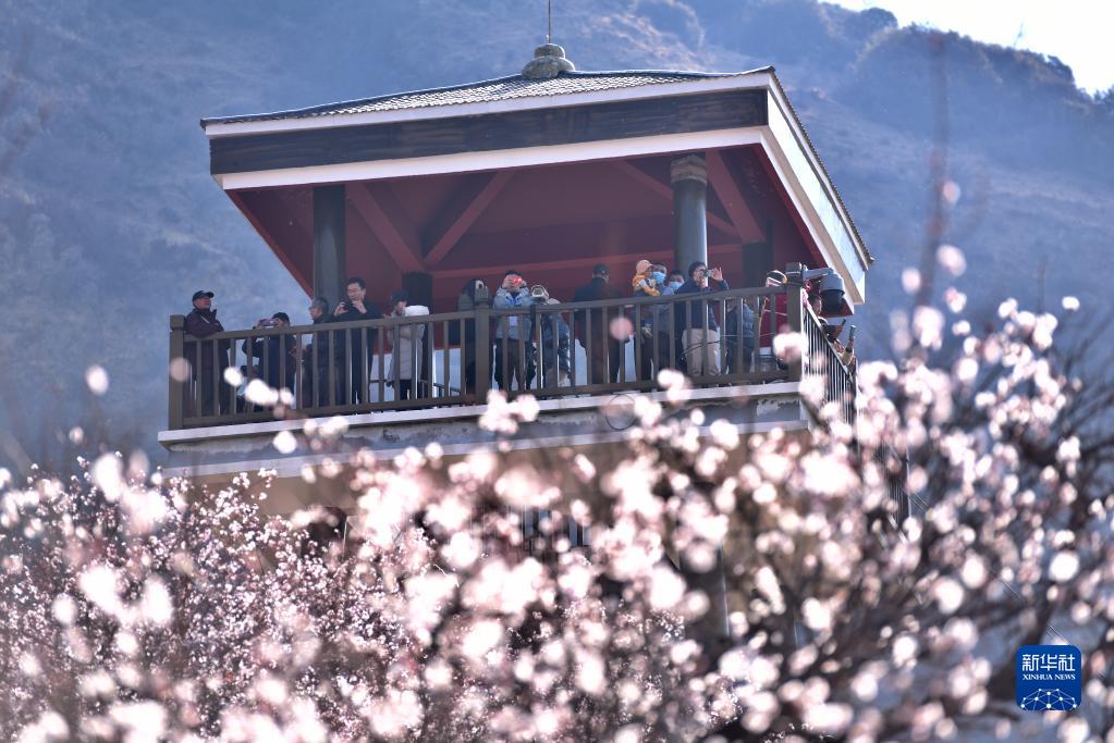 游客在林芝市嘎拉村觀賞盛開的桃花(2021年3月27日攝)。新華社記者 孫瑞博 攝