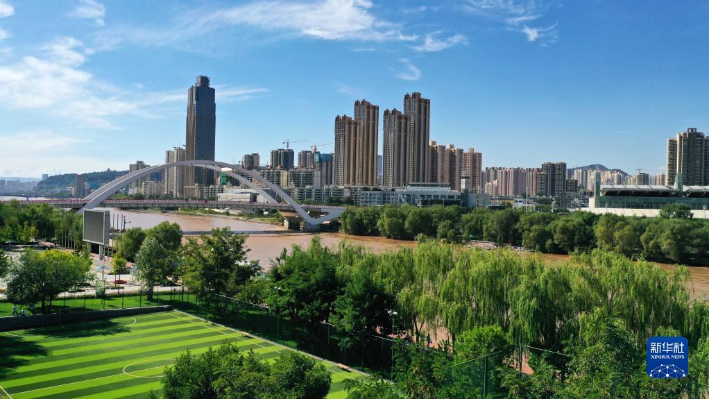 這是在甘肅省蘭州市拍攝的黃河兩岸城市風光(9月5日攝,無人機照片)。新華社記者 陳斌 攝