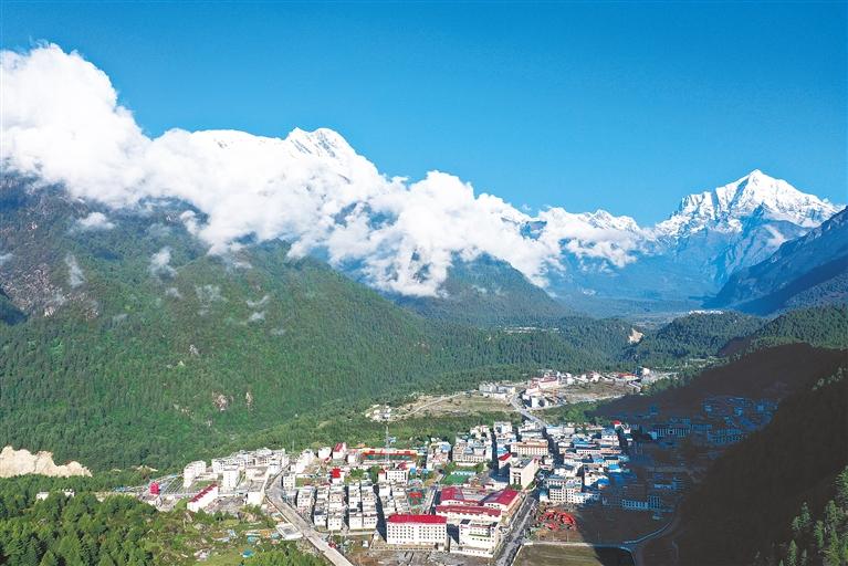 圖為2015年4月25日,尼泊爾發(fā)生里氏8.1級特大地震,位于邊境口岸的吉隆縣吉隆鎮(zhèn)受災(zāi)嚴(yán)重。圖為災(zāi)后重建的吉隆鎮(zhèn)新貌。