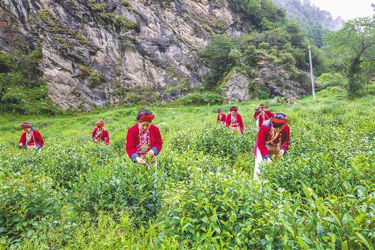 圖為加快建設(shè)邊境沿線發(fā)展帶,邊境一線各族群眾生活有保障、致富有渠道、守邊有動力、發(fā)展有支撐。圖為西藏自治區(qū)錯(cuò)那縣茶葉專業(yè)合作社農(nóng)牧民采摘新茶。