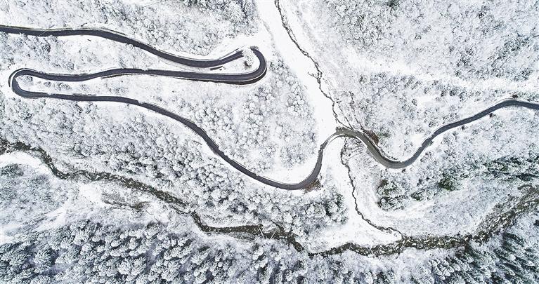 圖為統(tǒng)籌推進(jìn)邊境地區(qū)交通、能源、水利、通信、氣象等基礎(chǔ)設(shè)施建設(shè)。2013年中國最后一條通縣公路——墨脫公路全線貫通,2020年完成整治改建。圖為2021年11月拍攝的墨脫公路。