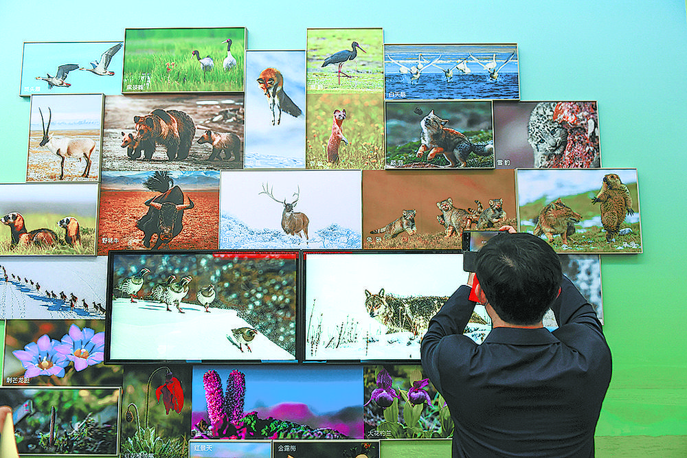 雪豹、兔猻、黑頸鶴、馬麝、廣布紅門蘭、水母雪兔子、紅花綠絨蒿……青海特有的動(dòng)植物照片墻吸引觀眾駐足,珍稀動(dòng)物的生活智慧和罕見(jiàn)植物的生長(zhǎng)歷程通過(guò)攝影師的鏡頭,向世界展示了青海生物多樣性保護(hù)取得的顯著成就。