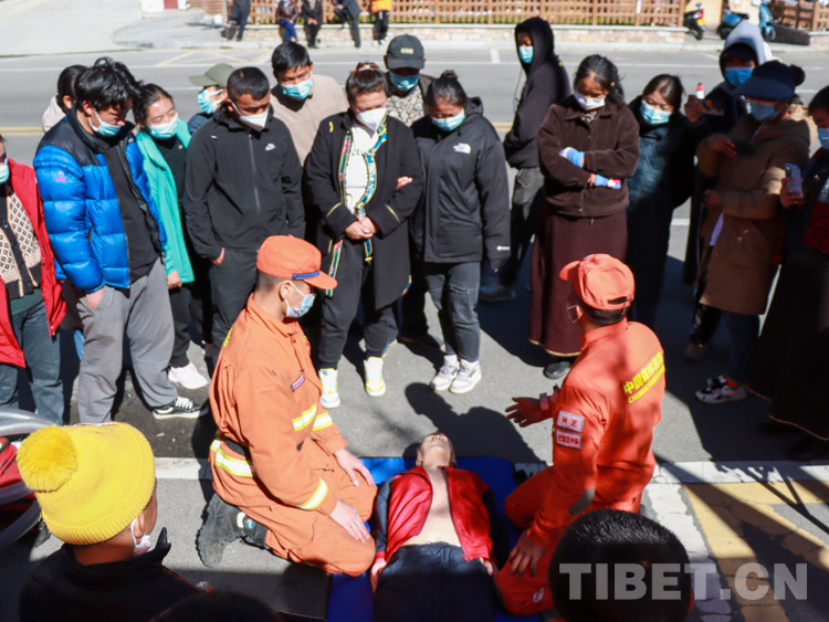 圖為消防員正在向駐地群眾教授緊急救護常識