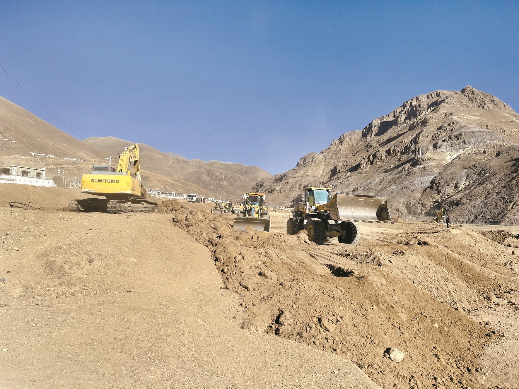 圖為堆龍德慶區(qū)德慶鎮(zhèn)邱桑村高標(biāo)準(zhǔn)農(nóng)田建設(shè)現(xiàn)場(chǎng)各種機(jī)械正在緊張作業(yè),到處呈現(xiàn)出一派繁忙景象。 拉薩融媒記者 莫瑞英攝