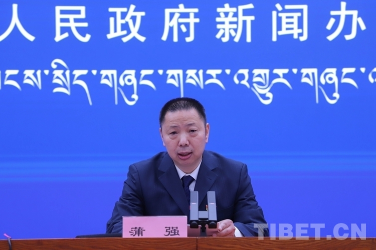 圖為西藏自治區(qū)氣象局黨組副書記、局長蒲強介紹相關情況