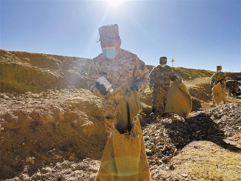 圖為安多縣武裝部官兵在河道沿岸撿拾垃圾,時刻守護著安多縣美麗生態(tài)環(huán)境。 記者 高玉潔 卞琳琳 攝
