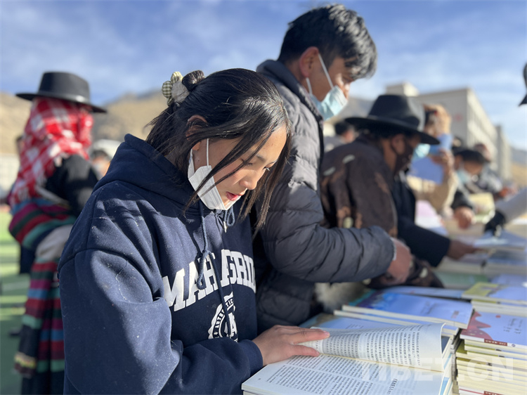 在送“書籍” 現(xiàn)場,《西藏文學》《西藏文藝》《邦錦梅朵》三個編輯部工作人員為現(xiàn)場群眾和當?shù)馗刹抠浰蜁數(shù)厝罕姾蛯W生們紛紛前來翻看尋找自己喜歡的書籍,大家人手幾本書。“我平時喜歡閱讀藏文文學作品,這次要了兩本文學相關書籍拿回家閱讀”17歲的益西巴珍說。據(jù)了解,此次活動西藏文聯(lián)向熱愛閱讀的群眾和學生共贈送1500本(冊)文藝書籍和期刊。