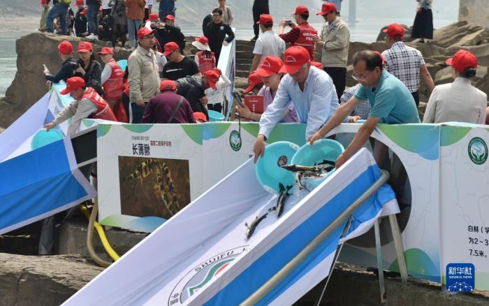 長江上游珍稀特有魚類國家級自然保護(hù)區(qū)云南段增殖放流活動在云南省水富市舉行(2021年4月23日攝)。新華社發(fā)