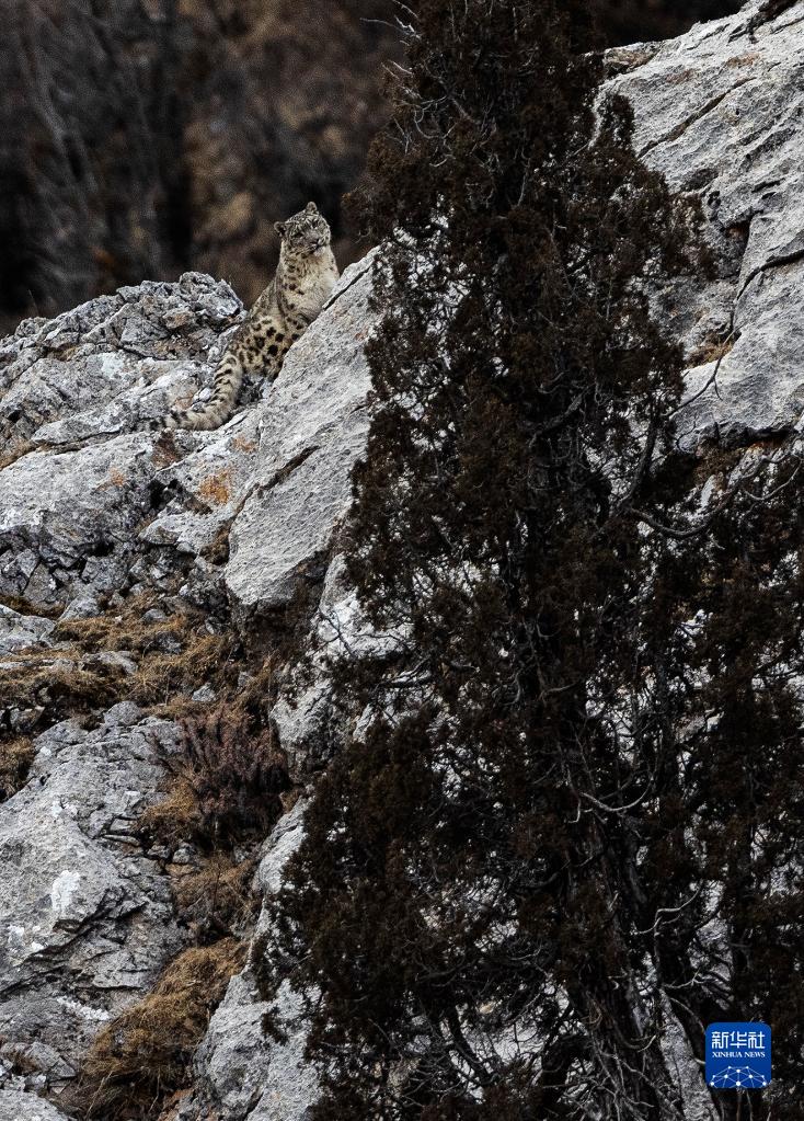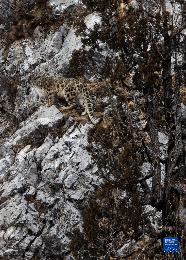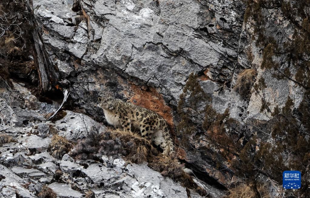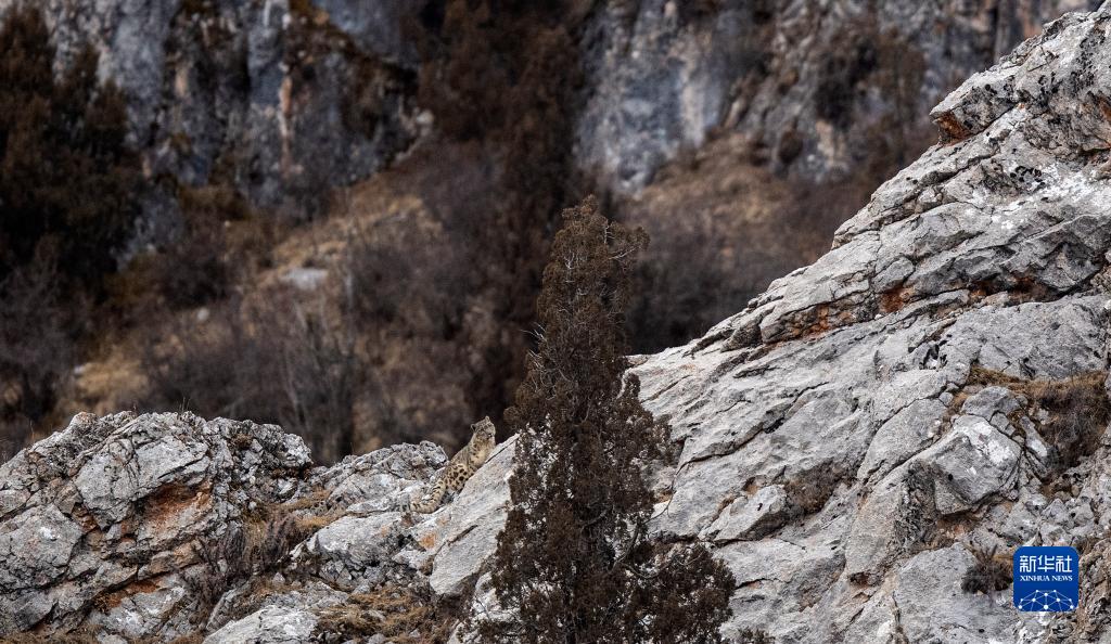 2月21日,在青海省玉樹藏族自治州雜多縣昂賽鄉(xiāng)境內(nèi)的昂賽大峽谷內(nèi),一只雪豹正在活動。新華社記者 張宏祥 攝