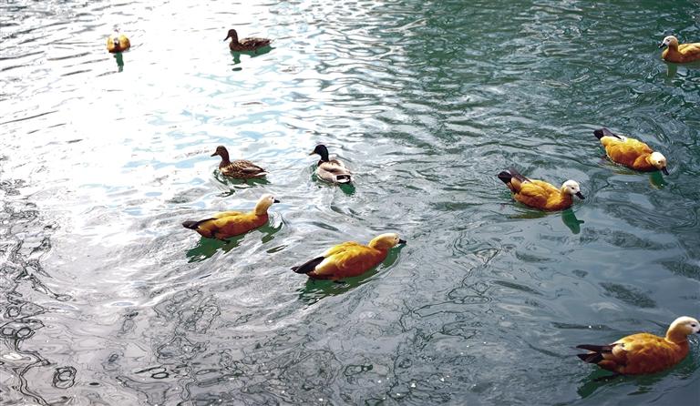 “竹外桃花三兩枝,春江水暖鴨先知?!比履_處處洋溢著春天的氣息。位于市中心的宗角祿康公園里,行人三三兩兩穿行其間,欣賞著高原上遲來的春色。棲息在水面上的各色候鳥,絕對算得上是春天的信使。當(dāng)候鳥排隊依次掠過宗角祿康公園的水面時,人們就知道,拉薩的春天來了。