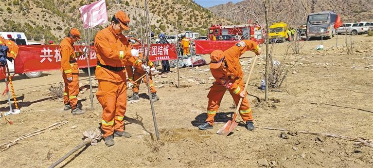 西藏左貢森林消防參加義務(wù)植樹(shù)活動(dòng)