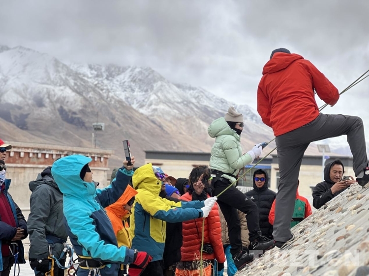 隨后,西藏自治區(qū)登山隊專業(yè)教練還組織山友們進行了適應(yīng)性徒步訓(xùn)練、登山技術(shù)培訓(xùn)等?!拔沂菑馁F州來的,這次登山大會是通過朋友了解到并過來參加的。為了大家的安全,主辦方專門提前安排了這么一個科普和訓(xùn)練,我覺得這很有必要,大家可以更多的了解一些登山知識”,吳先生剛結(jié)束登山技術(shù)訓(xùn)練下來說,“之前爬過五千多米的山,這次也應(yīng)該可以登頂”。(中國西藏網(wǎng) 記者/德吉卓瑪)