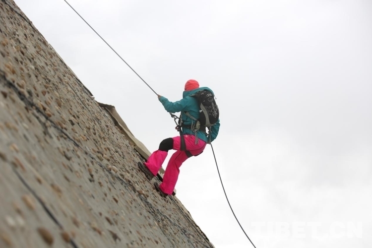 圖為登山隊專業(yè)教練對山友們進行登山技術(shù)培訓(xùn) 攝影:德吉卓瑪