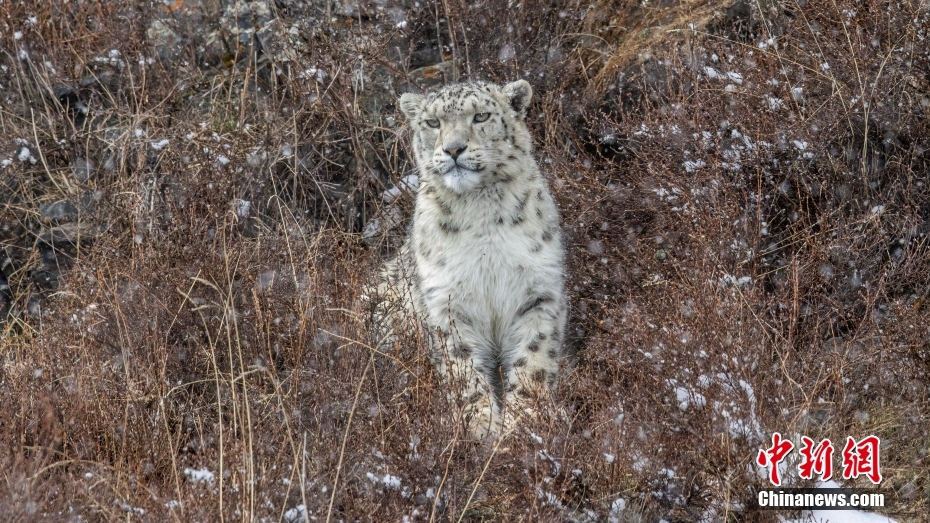四川省甘孜州石渠縣,位于青藏高原東南緣的川、青、藏三地結合部,平均海拔4520米,這里分布的44種獸類中屬國家級保護動物的有17種,占現(xiàn)有獸類的38.64%。圖為5月11日,國家一級保護動物雪豹爸爸在雪中。