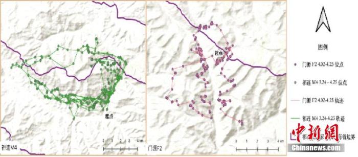 資料圖為被追蹤雪豹活動點位分布圖。 中新社發(fā) 祁連山國家公園青海省管理局 供圖