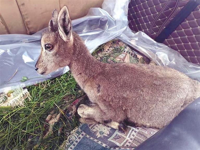 被林芝市林業(yè)和草原局工作人員救助的受傷巖羊在慢慢恢復。(林芝市林業(yè)和草原局提供)