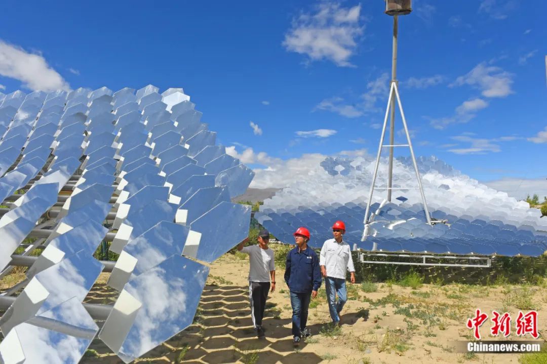 2020年6月,西藏山南市扎囊縣,工作人員對西藏首座多碟共焦塔式聚光集熱器的電力設(shè)施進(jìn)行驗收。宋衛(wèi)星 攝