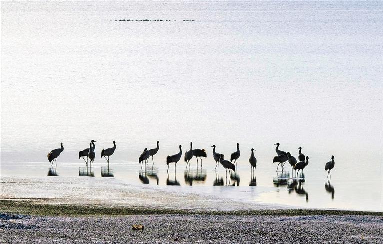 “生態(tài)好不好,看鳥就知道?!苯眨谖鞑卦蕉摹袄吓笥选焙陬i鶴越來越多。每年3月中旬,黑頸鶴會從越冬地——雅江中游河谷及其支流拉薩河、年楚河流域的“一江兩河”地區(qū),飛去羌塘北部草原等地繁育后代;10月中下旬又從繁殖地——那曲的班戈縣、申扎縣、嘉黎縣,阿里的日土縣、普蘭縣,日喀則的昂仁縣及拉薩的當雄縣返回到越冬地。黑頸鶴的成群遷徙、停歇或繁殖,正是生態(tài)環(huán)境持續(xù)向好的“最美注腳”。