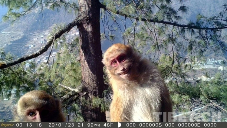 圖為定結縣珠峰管理分局孔定瑪管護站在珠峰國家級自然保護區(qū)內通過紅外相機拍攝到的獼猴。(定結縣林業(yè)局提供)
