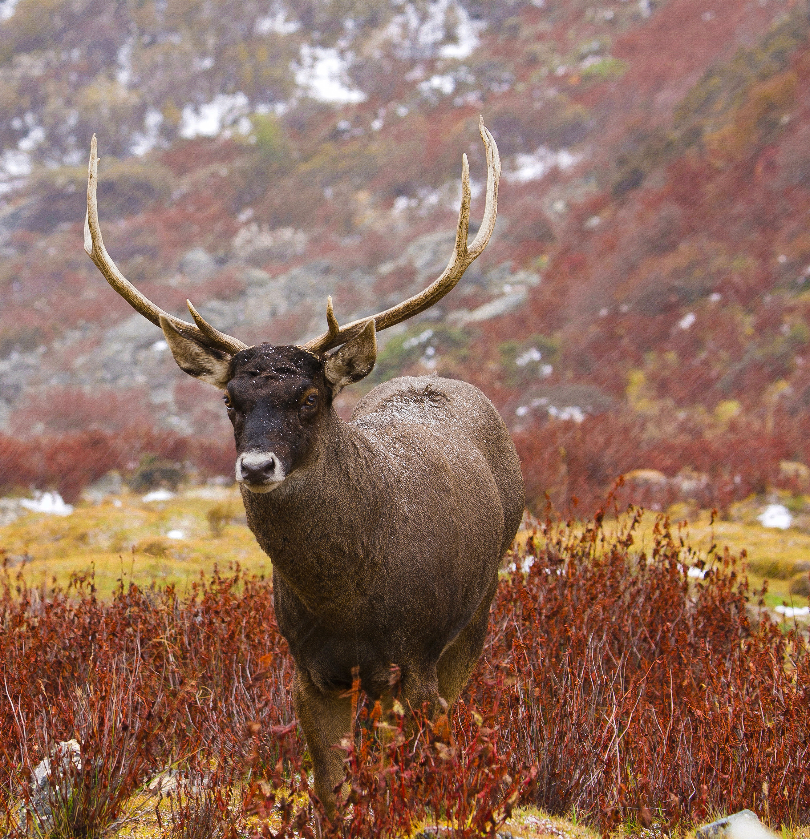 雪山下的馬鹿,國(guó)家二級(jí)保護(hù)動(dòng)物。