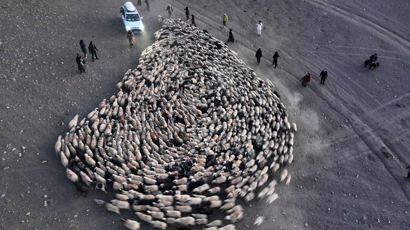 “每年趕羊前10天,村里家家戶戶都會開始準備爐灰,爐灰是用來撒在冰面上防止羊群摔倒?!蓖颜f。雖然提前撒好了防止羊群打滑的爐灰,但還是會有頻繁打滑摔跟頭的羊,此時牧羊人就會扶它們起來,或背或抱,把它們送到目的地。