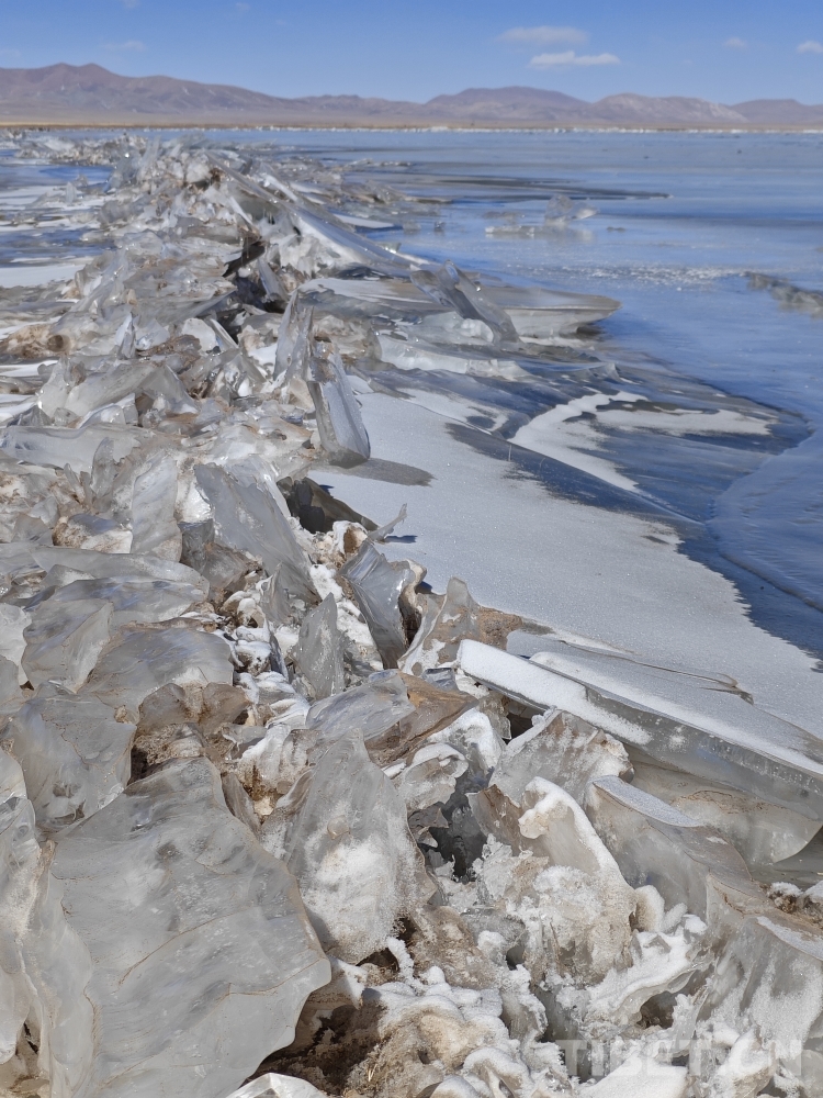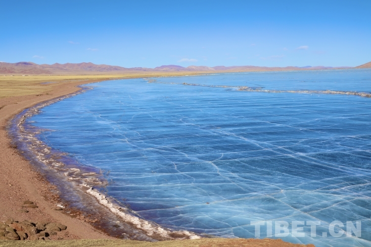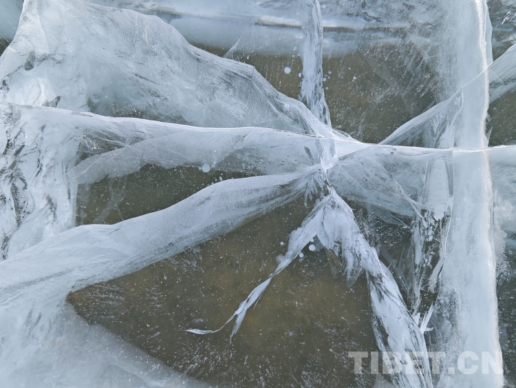 錯那湖湖面海拔4600米左右,面積400多平方公里,是世界上海拔最高的淡水湖,更有冰泡、冰裂、冰推等奇妙的自然景觀。當氣溫急劇下降時,水溫也驟降,湖底產(chǎn)生的氣體在上升過程中被凍在冰中,形成許多細小的白色氣泡,懸浮在厚厚的冰層之中。湖水表面一層被藏北的朔風快速凍結(jié)成冰,部分碎冰在岸邊堆積,形成隆起的“冰岸線”。又由于初春晝夜溫差較大,湖冰崩裂,形成網(wǎng)狀的冰裂紋路。這些透明裂紋從岸邊開始,像潮水一樣漫過平地,漫過羌塘草原腹地,漫到天邊,把羌塘大地裝扮成一個冰晶縱橫交錯的世界。(中國西藏網(wǎng)文/李一凡 張萌萌 龍真多吉)
