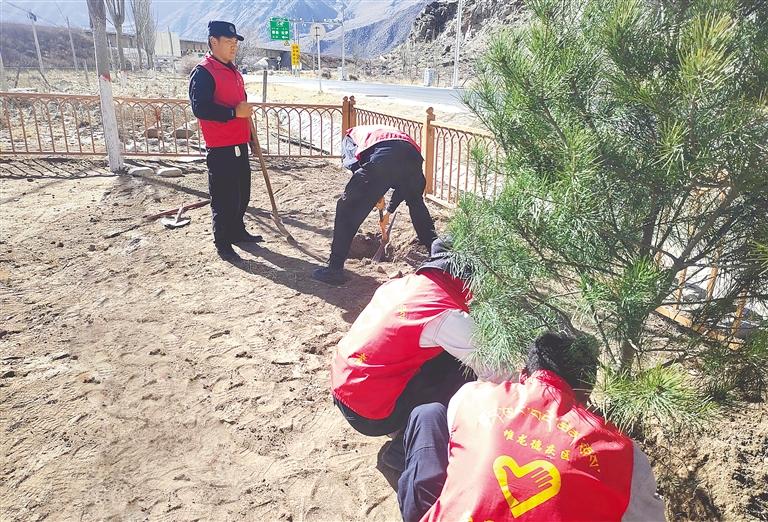 圖為拉薩市堆龍德慶區(qū)古榮護路大隊的隊員在植樹。記者 旦增蘭澤 通訊員 拉巴 攝