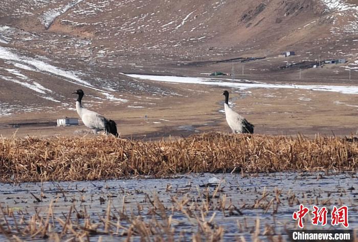 圖為拉薩市當(dāng)雄縣阿熱濕地里的黑頸鶴。益西旦增 攝