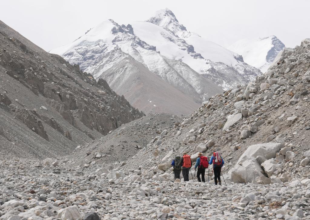德諾埃爾兄弟和隊友們正在離開珠峰登山大本營前往更高海拔的營地(5月18日攝)。新華社記者 丁汀 攝