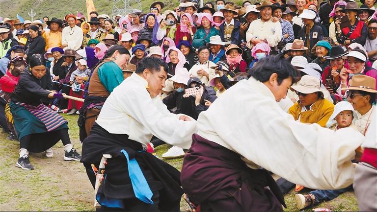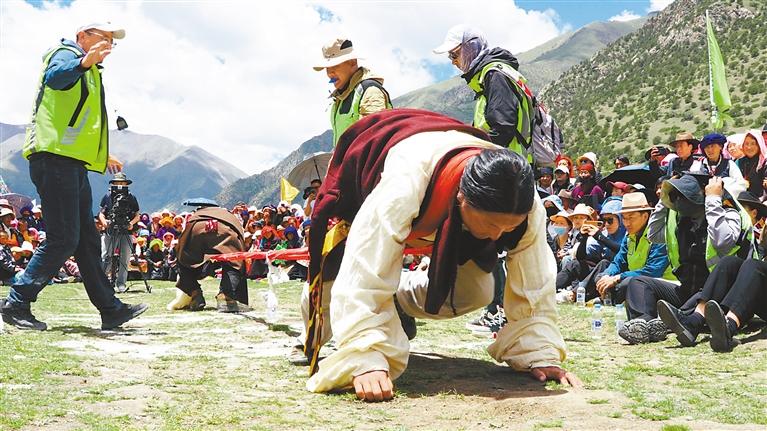 “‘繽紛四季·多彩林周’活動內容實在是太豐富了,我們沿途觀賞到了美景,而且還體驗了西藏民俗風情,現場看到村民們擠牦牛奶、手工制作奶制品、指尖技藝制作酥油花等。讓我們感到震驚的是藏族大哥、大姐的力氣真是太大了,能用繩子拉動越野車,扛起百斤重的石頭,給我們帶來了滿滿的視覺盛宴。我是第三次進藏,這次的收獲最多,讓我體驗到了不一樣的西藏?!眮碜员本┑挠慰蛷埾壬d奮地說。