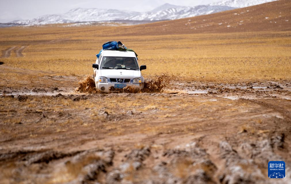5月10日,野生動物專業(yè)管護隊員的車子在巡護路上穿越泥濘路段。新華社記者 姜帆 攝