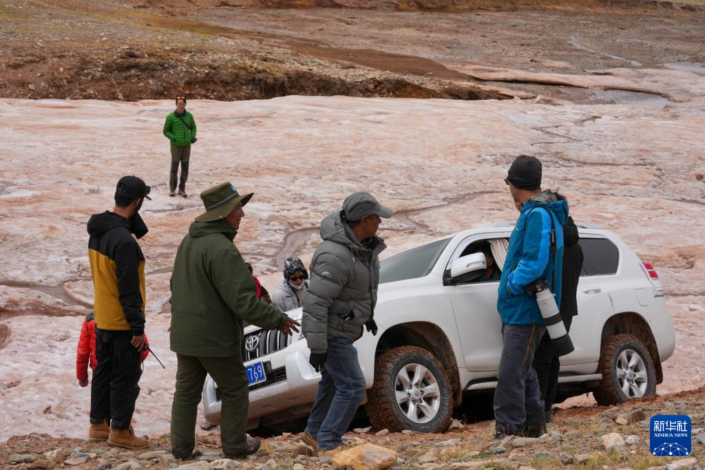 6月15日,車輛在羌塘國家級自然保護區(qū)內(nèi)過冰坡遇困。新華社記者 旦增尼瑪曲珠 攝
