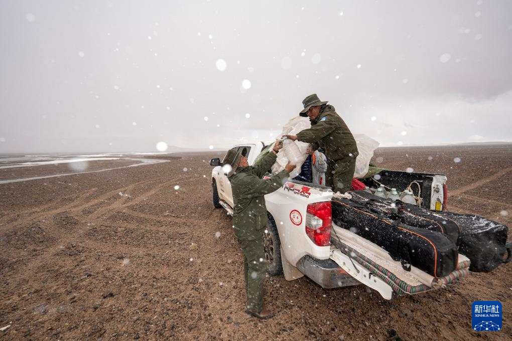 “快快快,天要黑了,趕緊把帳篷扎起來!”羌塘國家級自然保護區(qū)羅布玉杰野生動物管護站站長格桑倫珠對同事索朗和羅布說到。