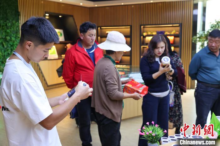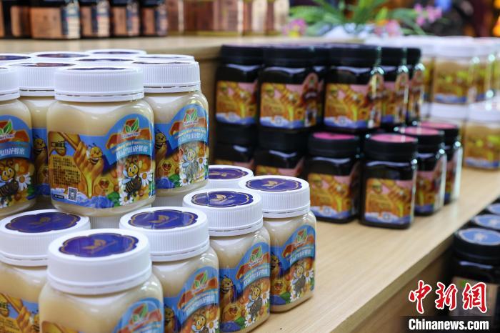 9月24日,記者跟隨2024年青海湖生態(tài)保護(hù)能力提升培訓(xùn)班來到青海省海南藏族自治州貴德縣青海青藏蜜蜂良種養(yǎng)殖場,展臺(tái)上擺放著各類藏蜜。中新社記者 薛蒂 攝