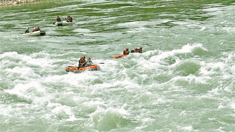 圖為結(jié)合駐地環(huán)境,指戰(zhàn)員開展水域訓(xùn)練。記者 彭琦 攝