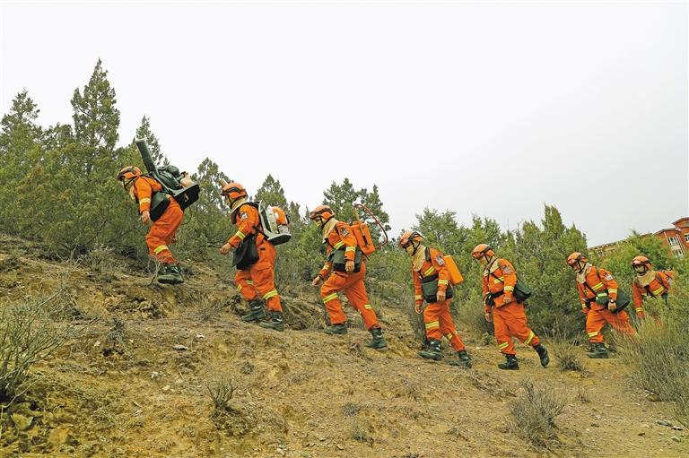 圖為指戰(zhàn)員進(jìn)行林區(qū)勘察。記者 彭琦 攝