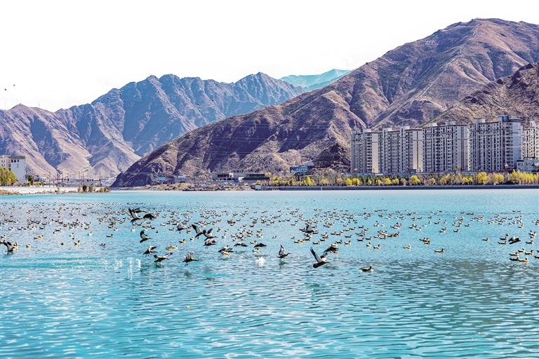 展翅飛翔的紅嘴鷗、在冬日暖陽下游泳的黃鴨、河中戲水的斑頭雁……自10月中旬開始,來自各地的越冬候鳥陸續(xù)抵達(dá)西藏,它們跨越千山萬水尋找宜居的棲息地,并在西藏各地的濕地湖泊“安家落戶”。