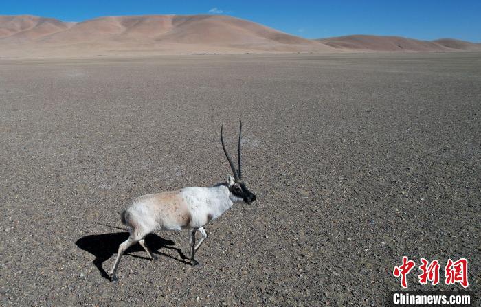 圖為12月8日,棲息在魯確塘草原的藏羚羊。(無(wú)人機(jī)照片)中新社記者 李林 攝