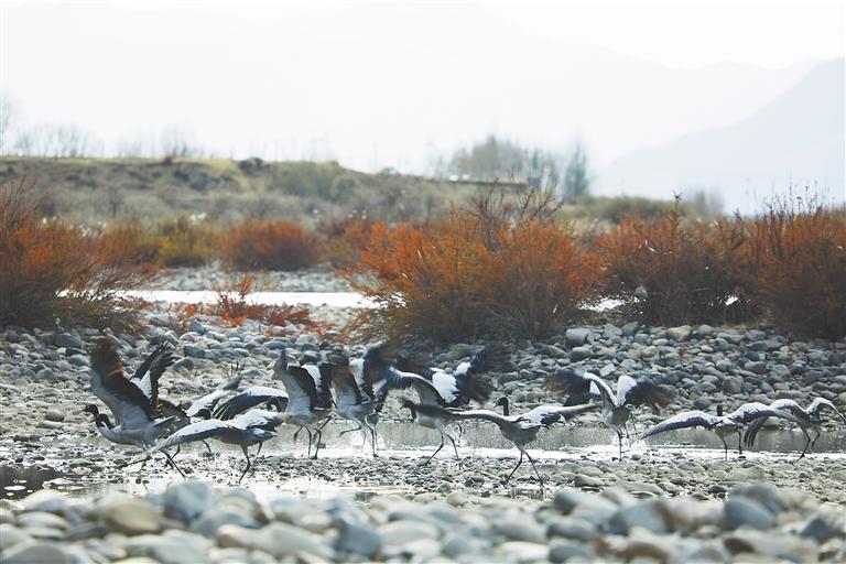 如今,一批又一批黑頸鶴從四川、青海等地啟程,歷經(jīng)近千公里的長途跋涉,紛紛抵達(dá)西藏各越冬地,開啟他們的越冬生活。