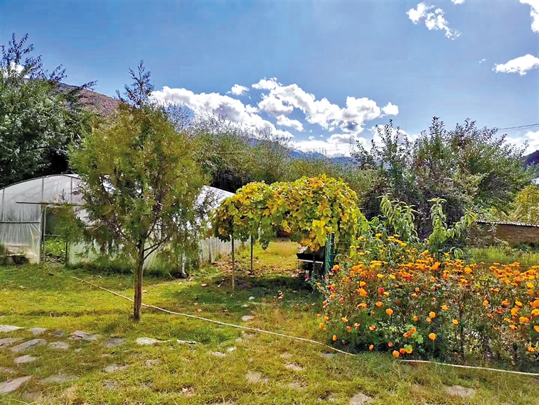林芝市巴宜區(qū)米瑞鄉(xiāng)麥娘麥村一戶村民的庭院綠化環(huán)境。記者 劉楓 攝